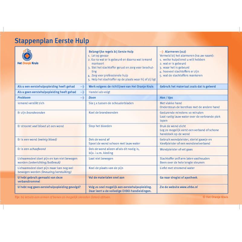 Oranje Kruis stroomdiagram voor in Oranje Kruis gecertificeerde verbanddozen en -koffers.