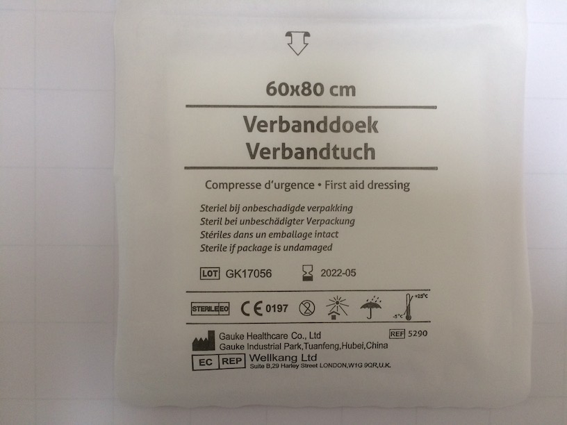 Steriel verbanddoek van 60 x 80 cm voor het afdekken van grote wonden.